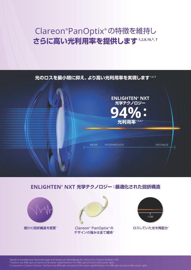 全世界最多インプラント実績のあるパンオプティクスのPROモデル。従来モデルの特性をそのままに、光利用率を向上させました。この新世代レンズは、94%という前例のない光利用効率を達成しました。